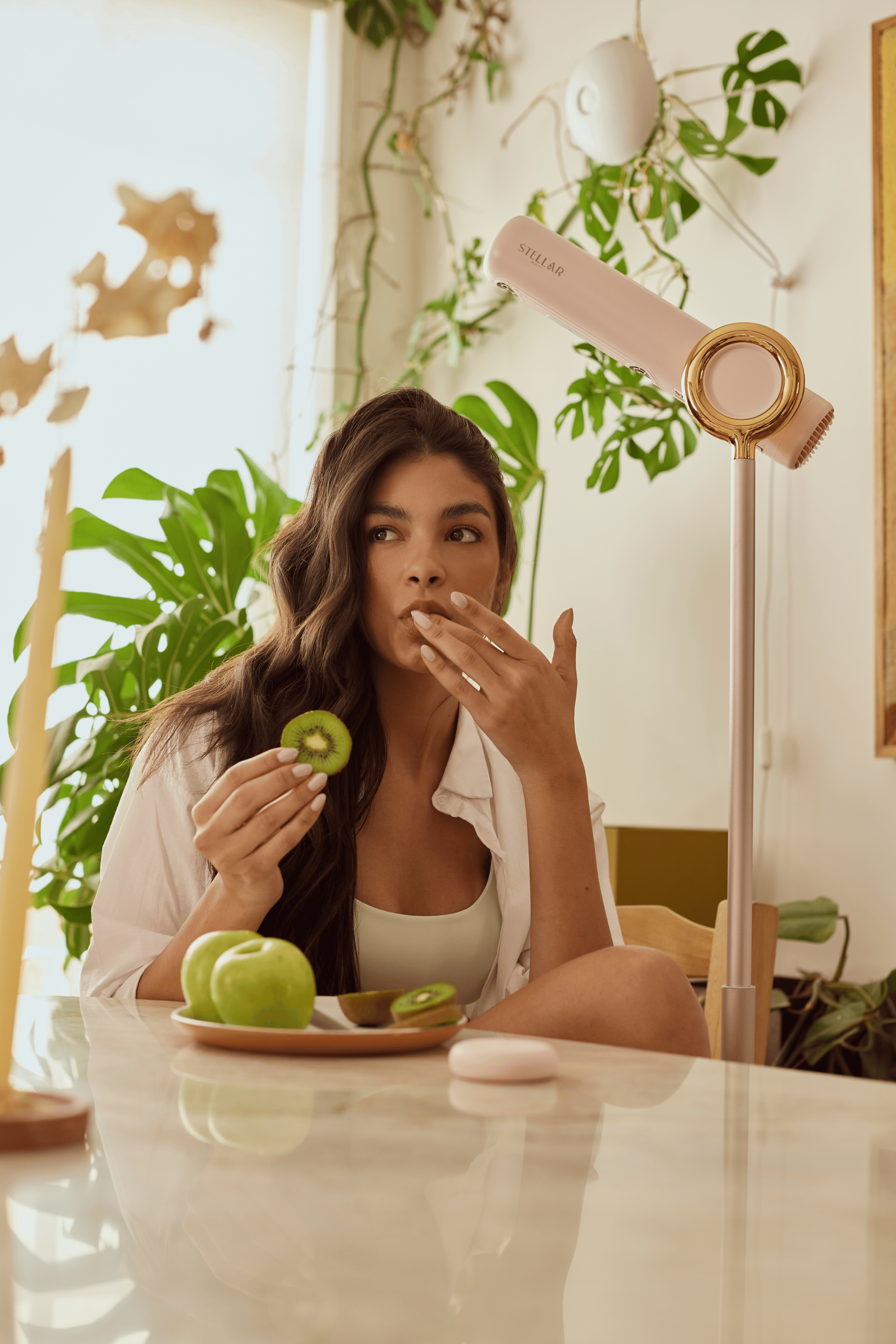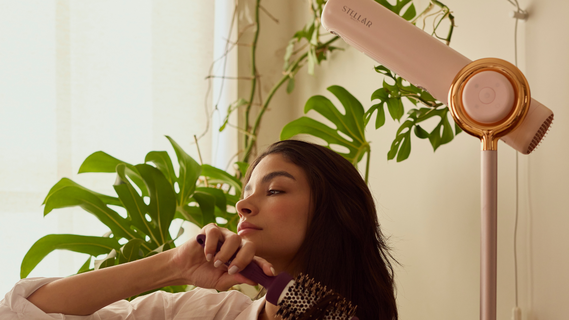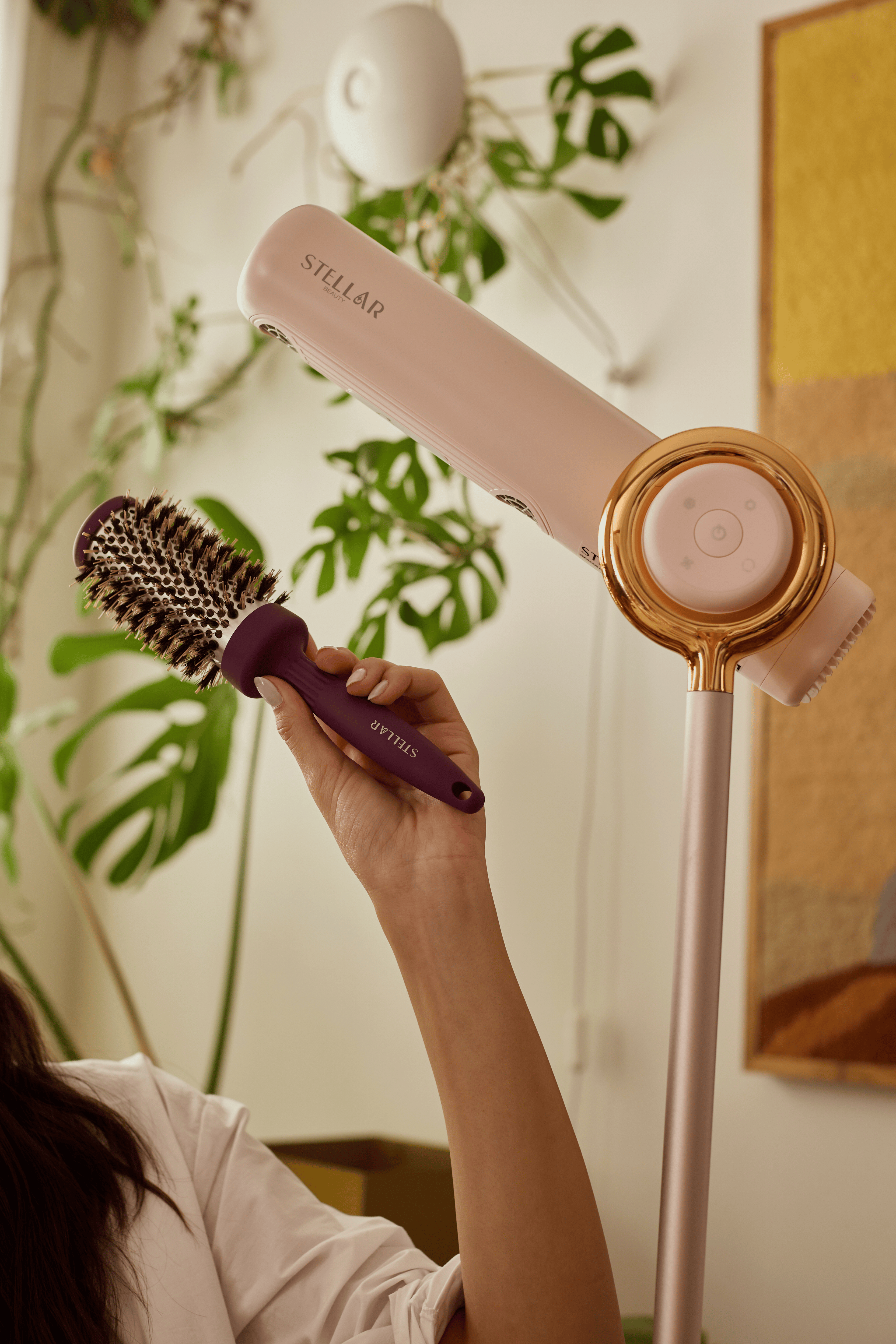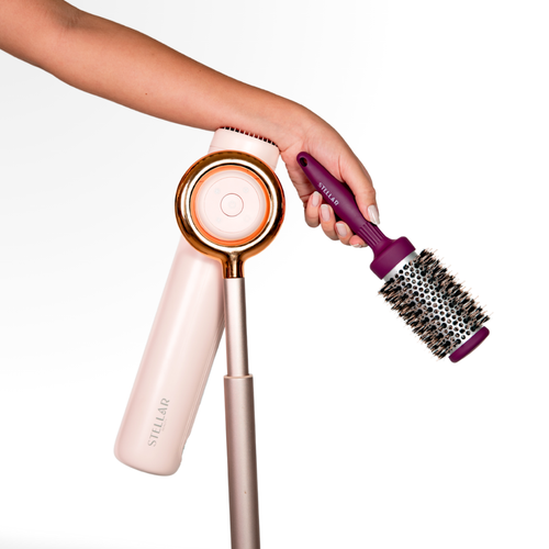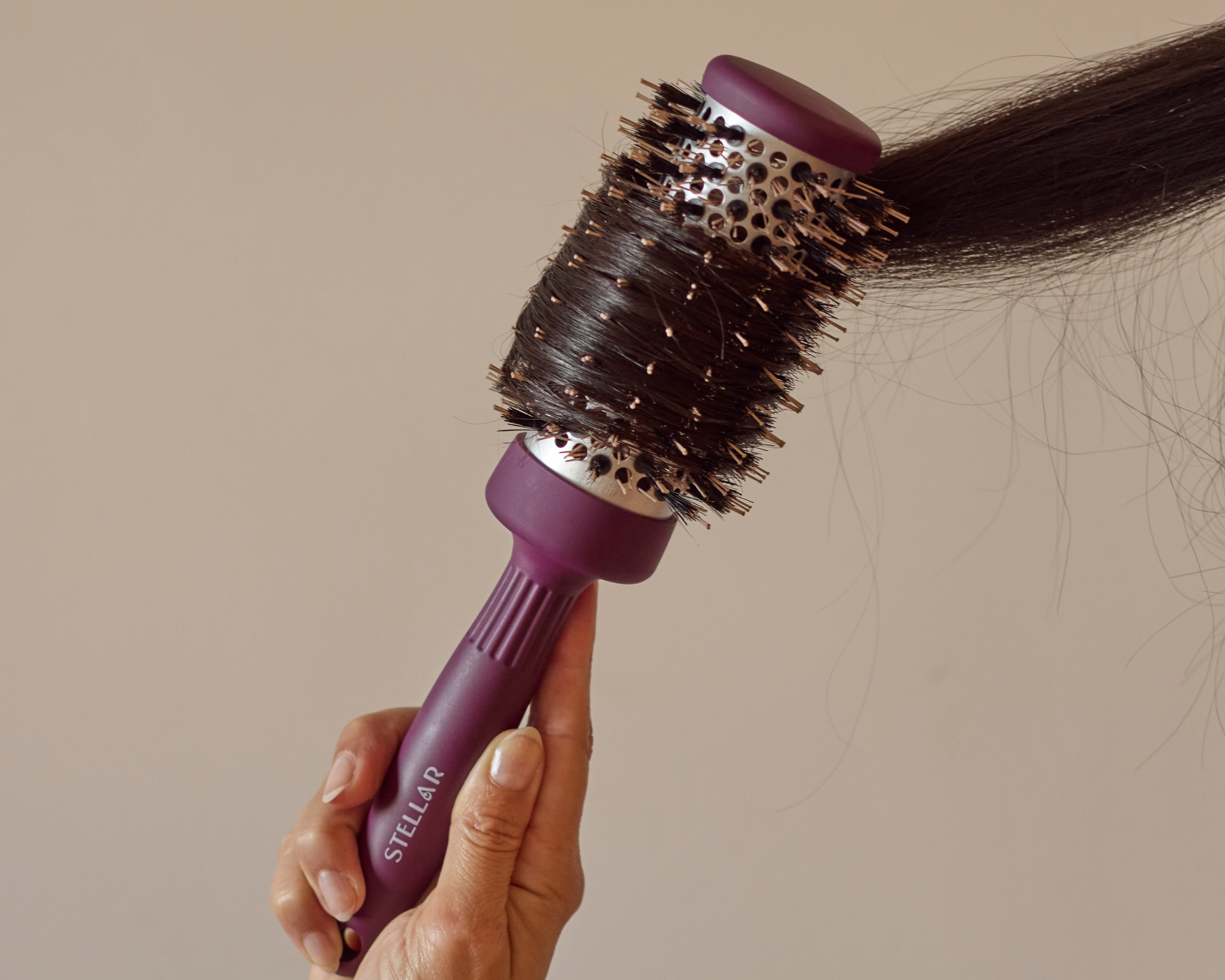 Suas cerdas mistas atuam diretamente no controle do frizz, promovendo brilho instantâneo e um acabamento visivelmente mais alinhado desde a primeira passada.